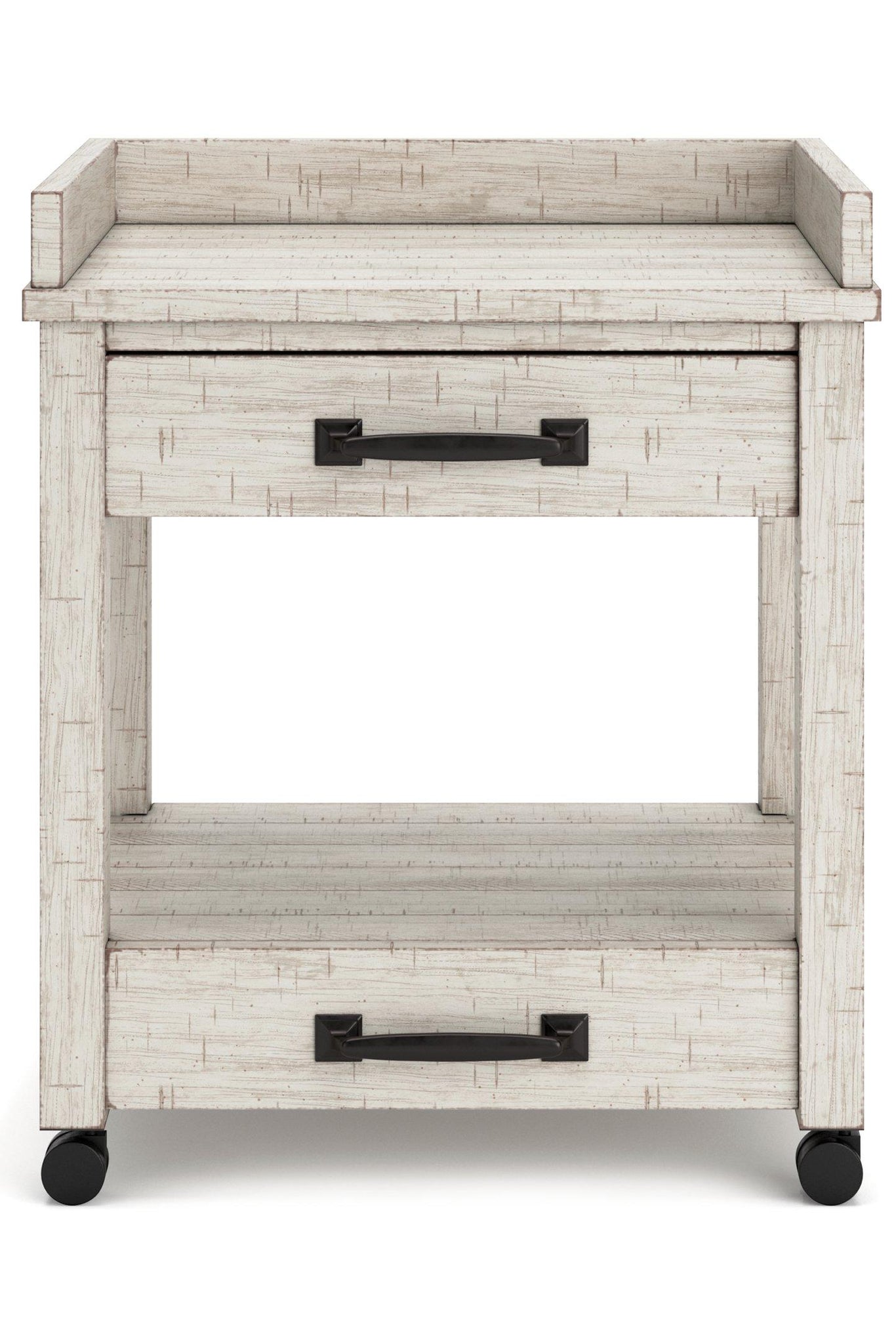 Set on casters for easy mobility, this printer stand rolls out a fresh look in modern farmhouse living. Two smooth-gliding drawers with dovetail construction reflect high quality that never goes out of fashion. Pair of electrical outlets and USB charging ports make it an indispensable home office essential.